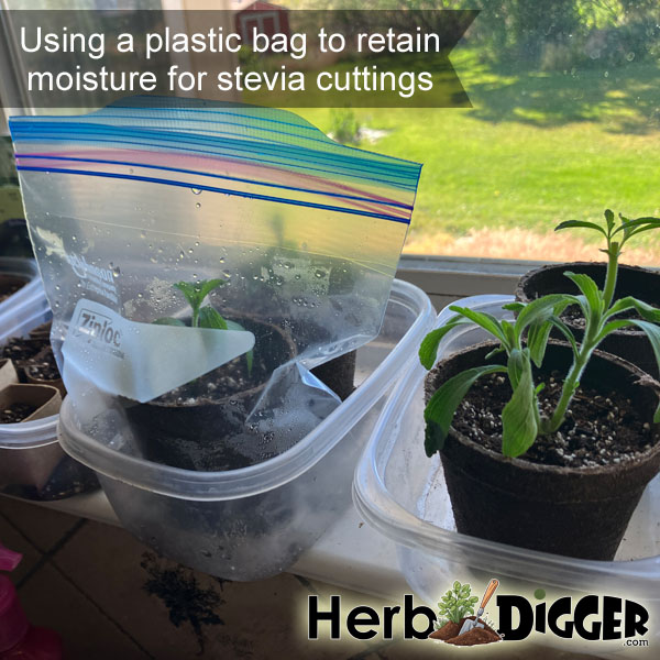 - PLASTIC VENTING MISTAKE: I used quart-sized plastic bags with a zip seal to keep moisture in for my stevia cuttings. If I removed the bags, the plants would sag. However, leaving them sealed too long led to mold in the soil. It was a constant balance of taking the pots out for ventilation, watching the stems and leaves droop, and putting them back. Ultimately, I found that slightly opening the tops allowed for enough air circulation while keeping the soil evenly moist. At one point, I thought I had lost all the plants because every single one was drooping when I took them out to air.